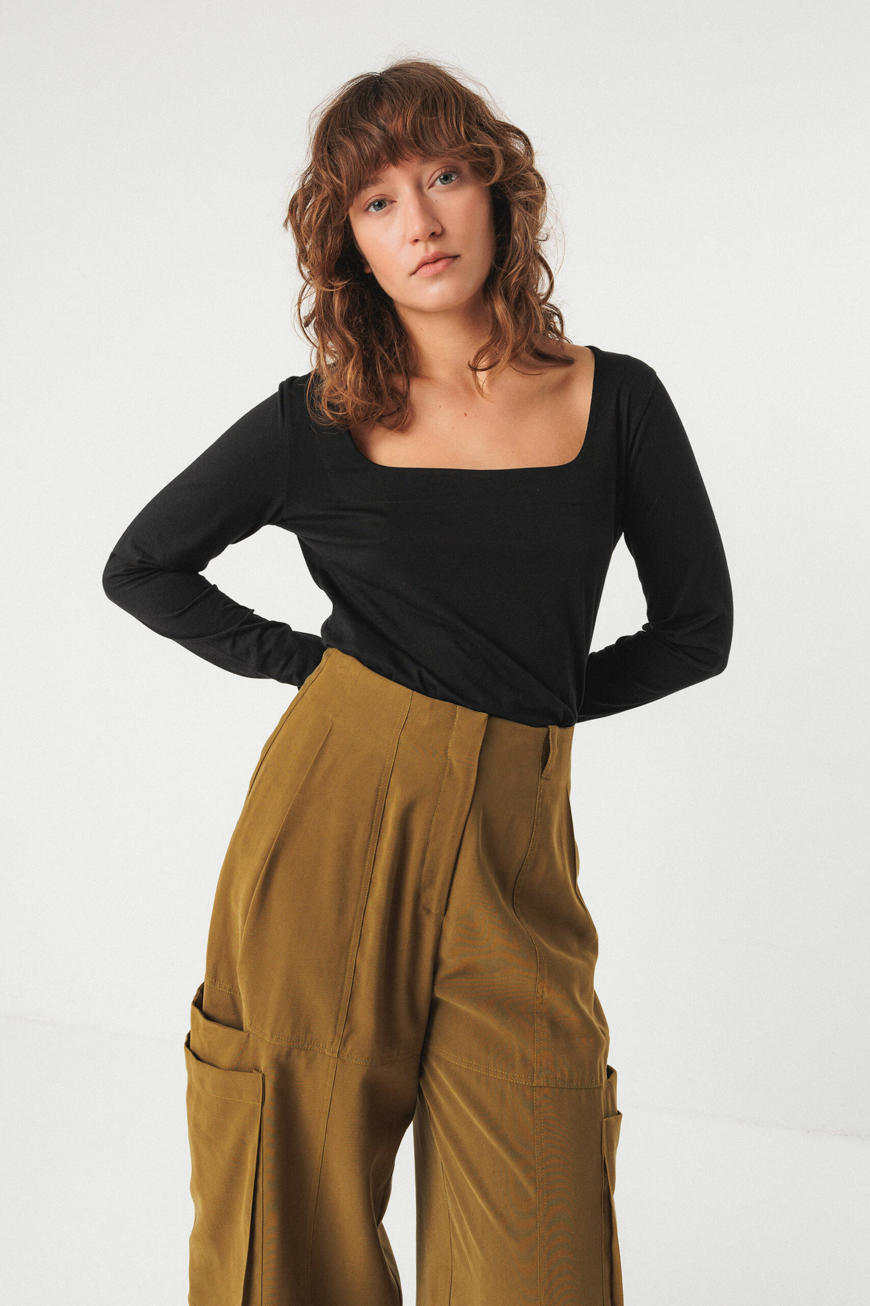 & Free ShippingCamiseta de manga larga y corte ceñido con escote cuadrado. Un básico atemporal.