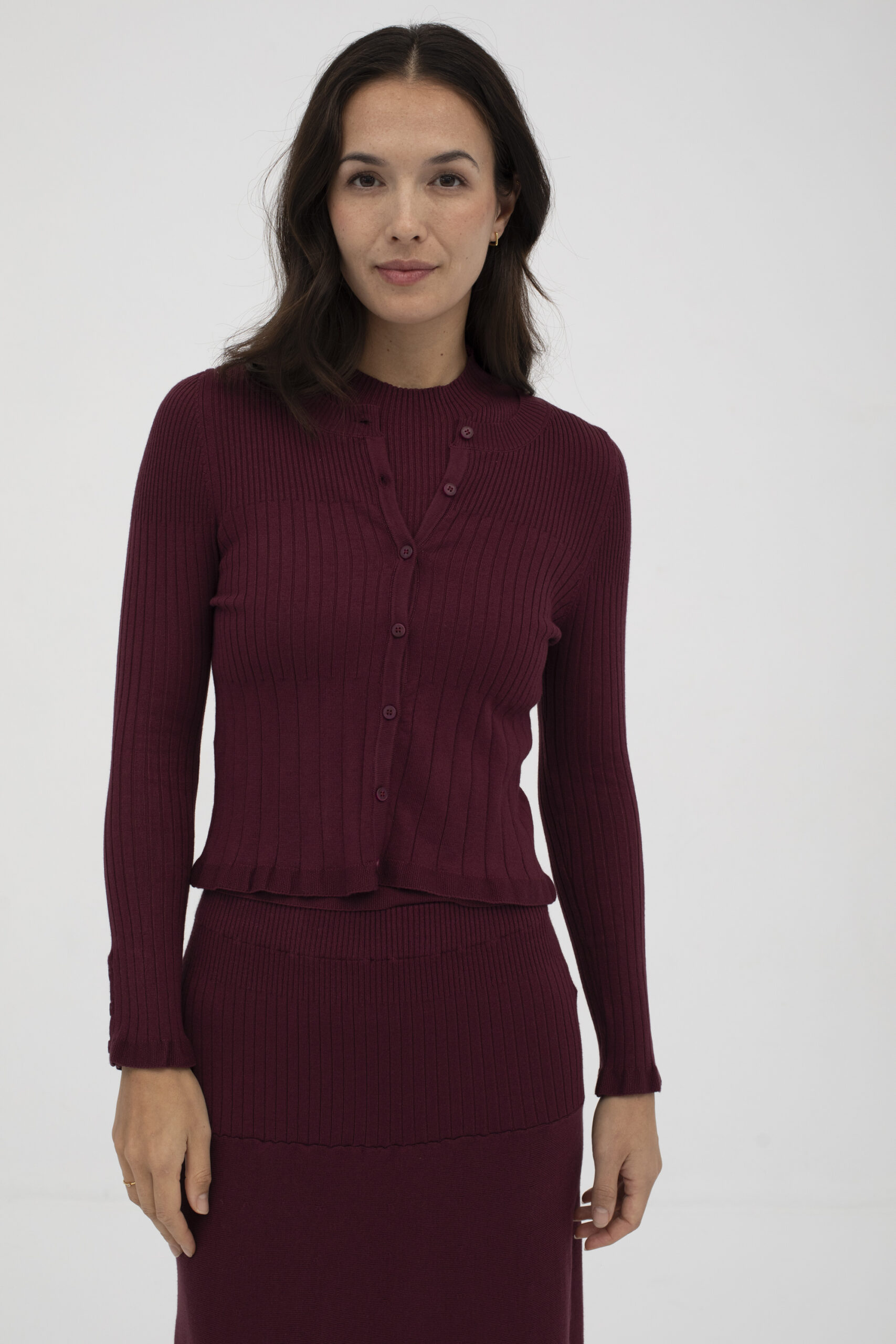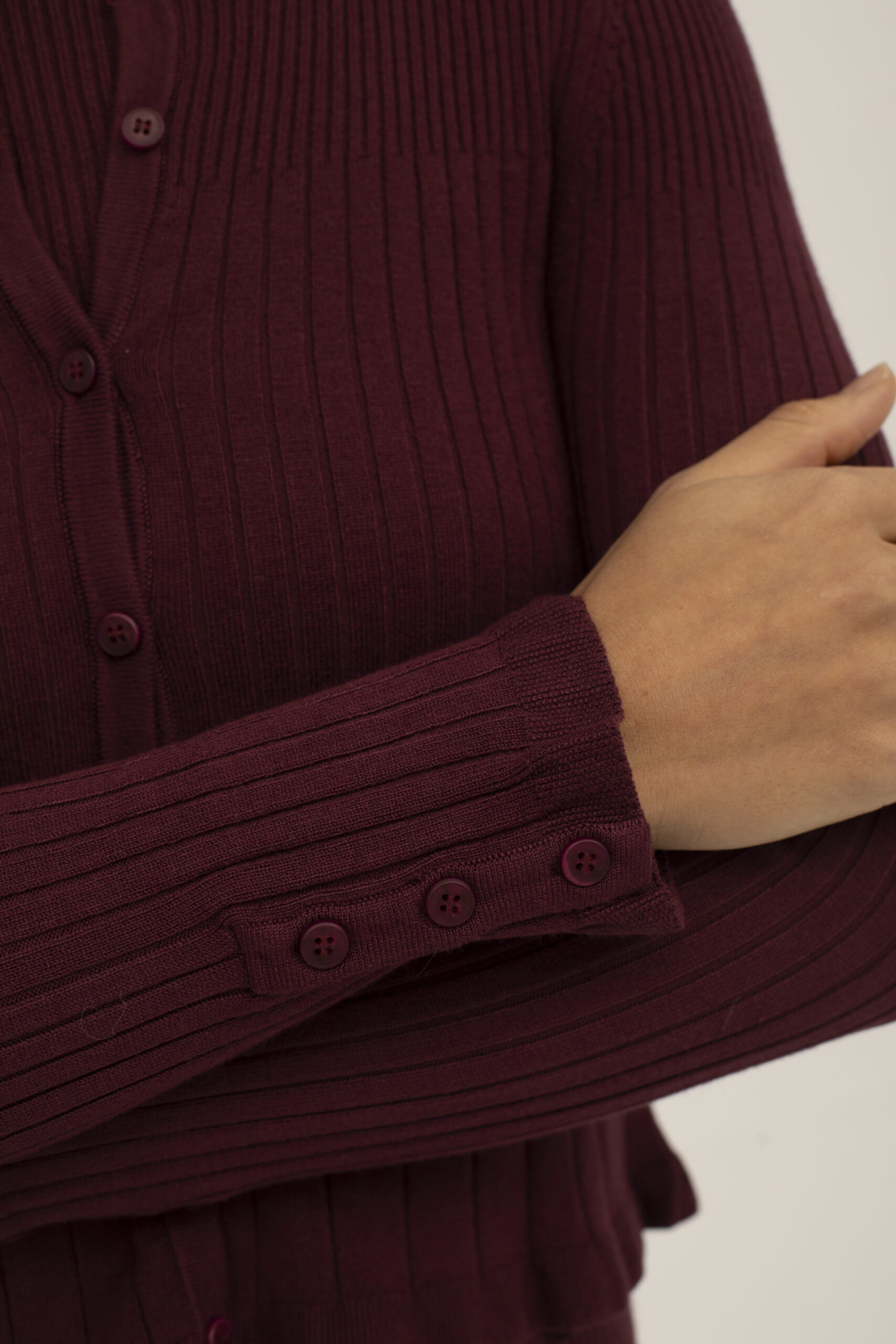 & Free ShippingCárdigan ajustado de manga larga y corte recto, con un diseño único que combina tres tipos diferentes de canalé en el cuerpo y dos en las mangas. Tiene un cuello redondo y cierre de botones. Los puños cuentan con un detalle de tres botones.