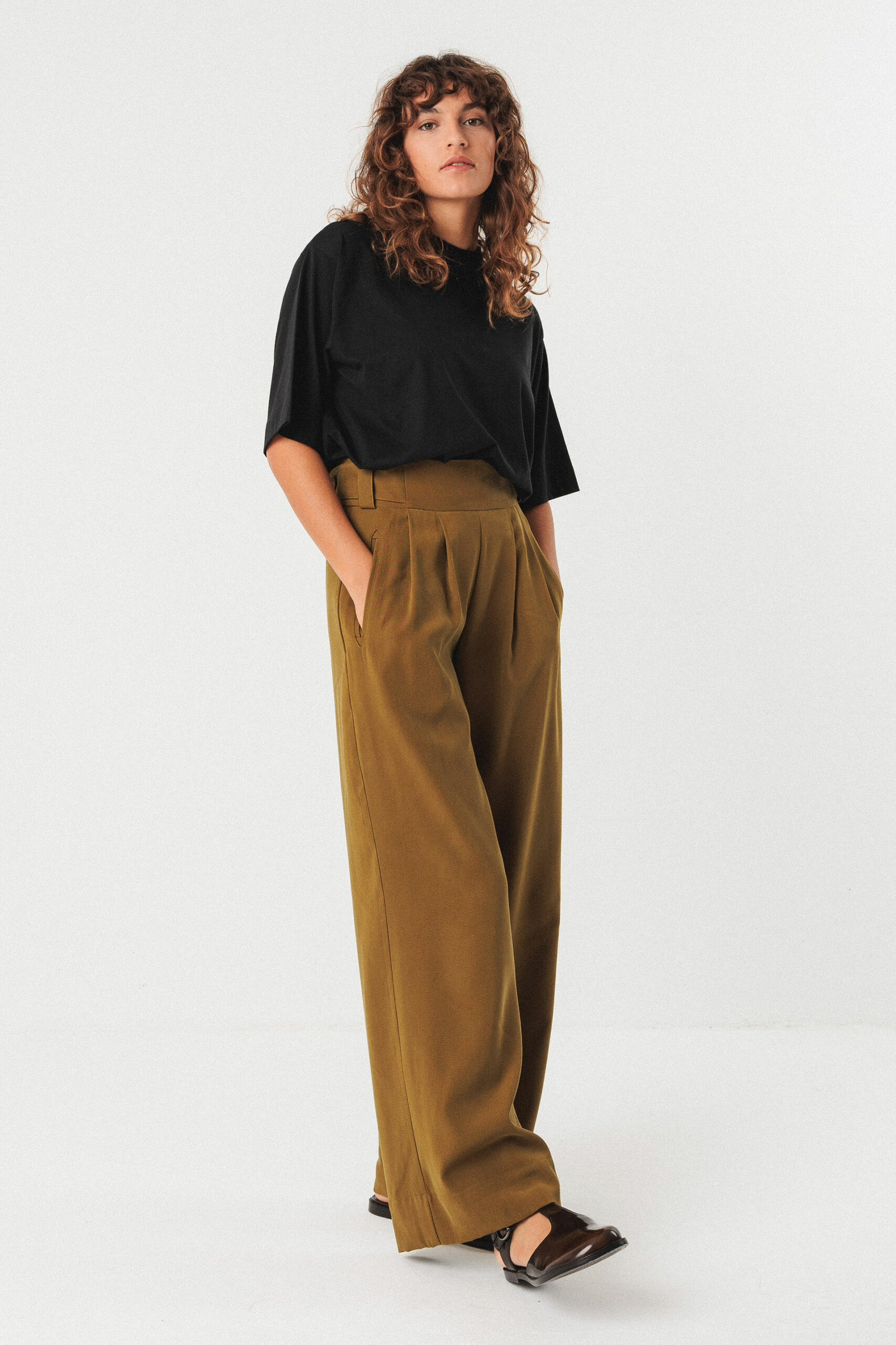 & Free ShippingPantalón palazzo de cintura alta con unas franjas de adorno con botones en la cintura. Llega hasta el tobillo y tiene bolsillos delanteros y un cierre de cremallera lateral.