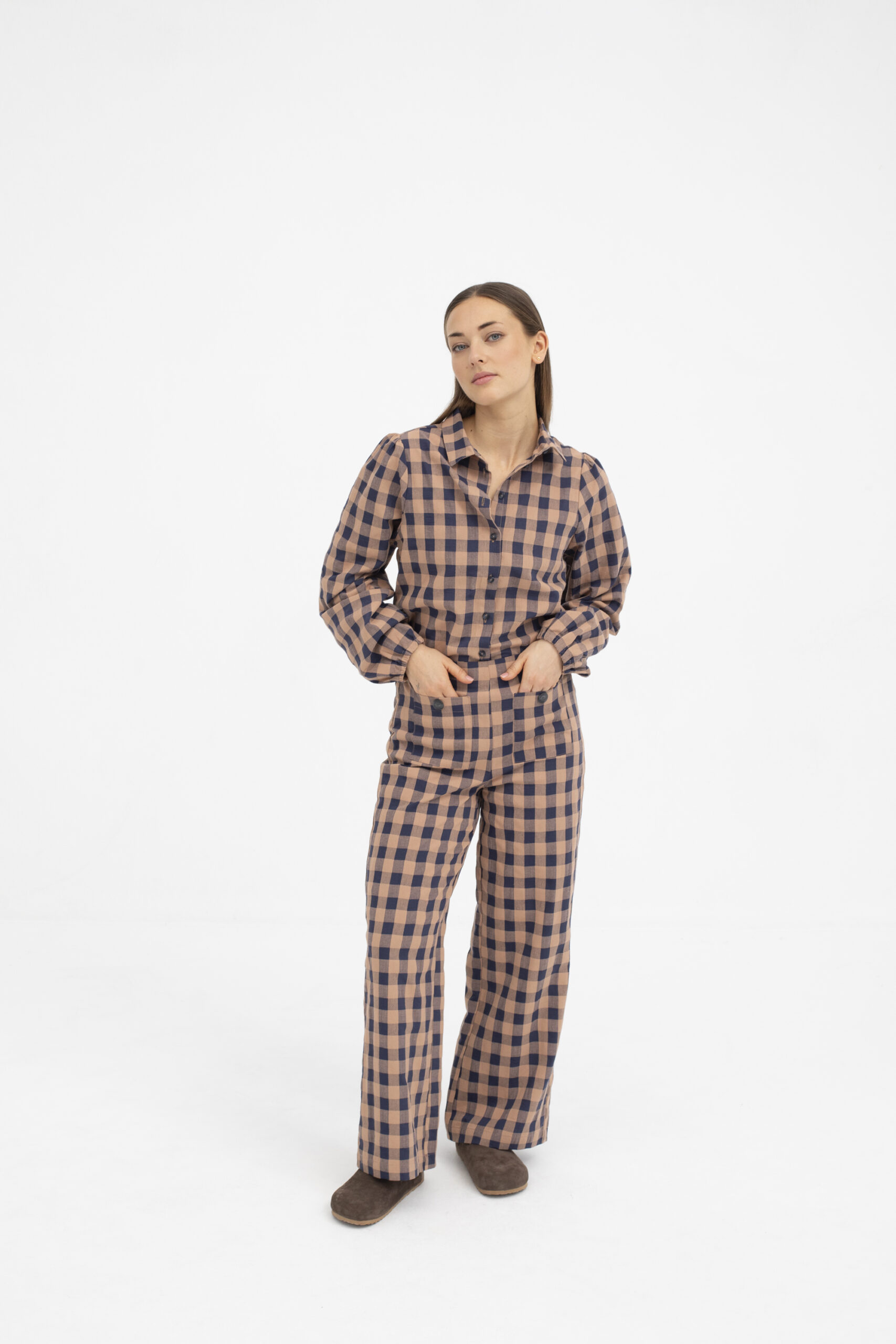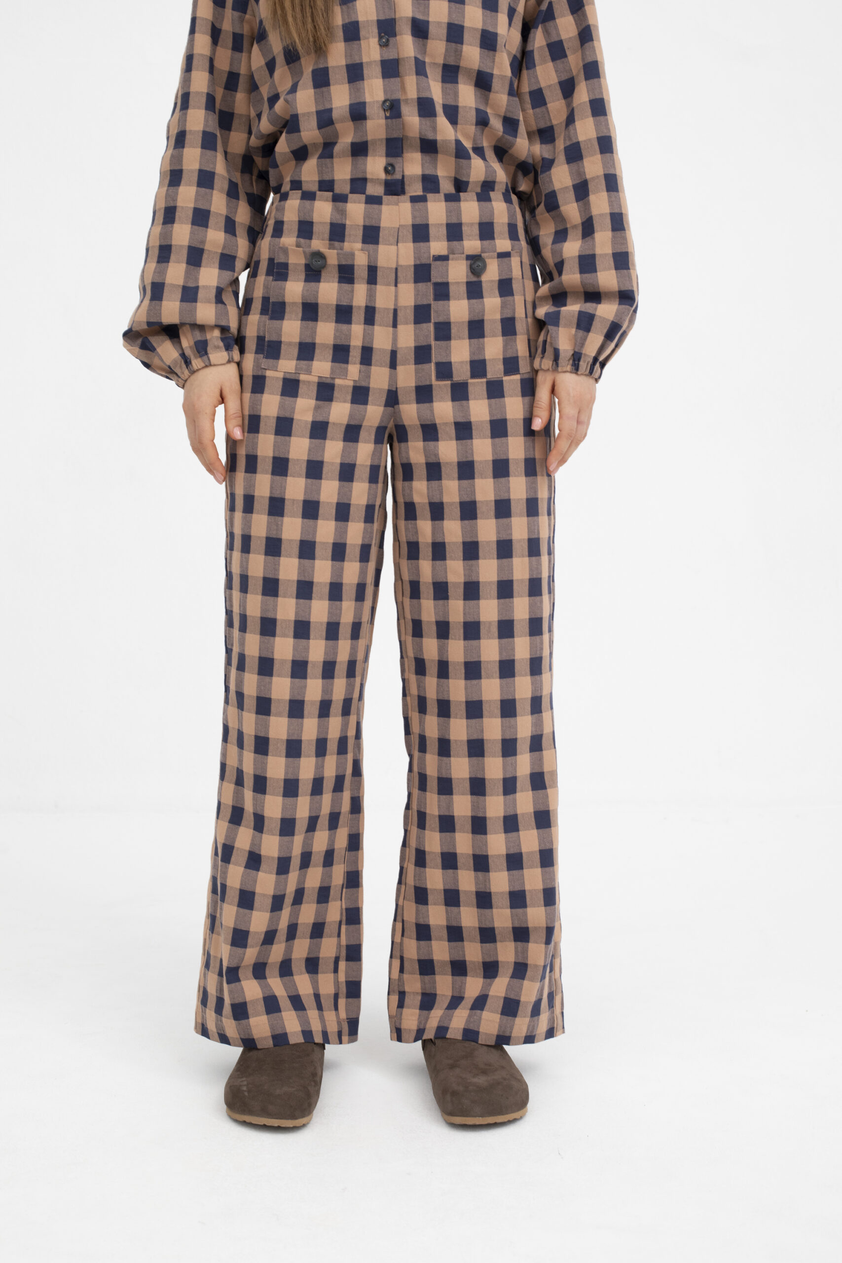 & Free ShippingPantalón estilo culotte de vichy con cinturilla plana en la espalda, cremallera invisible en el lateral y bolsillos frontales con botón. Ideal para combinar con su conjunto o por separado. Un clásico.