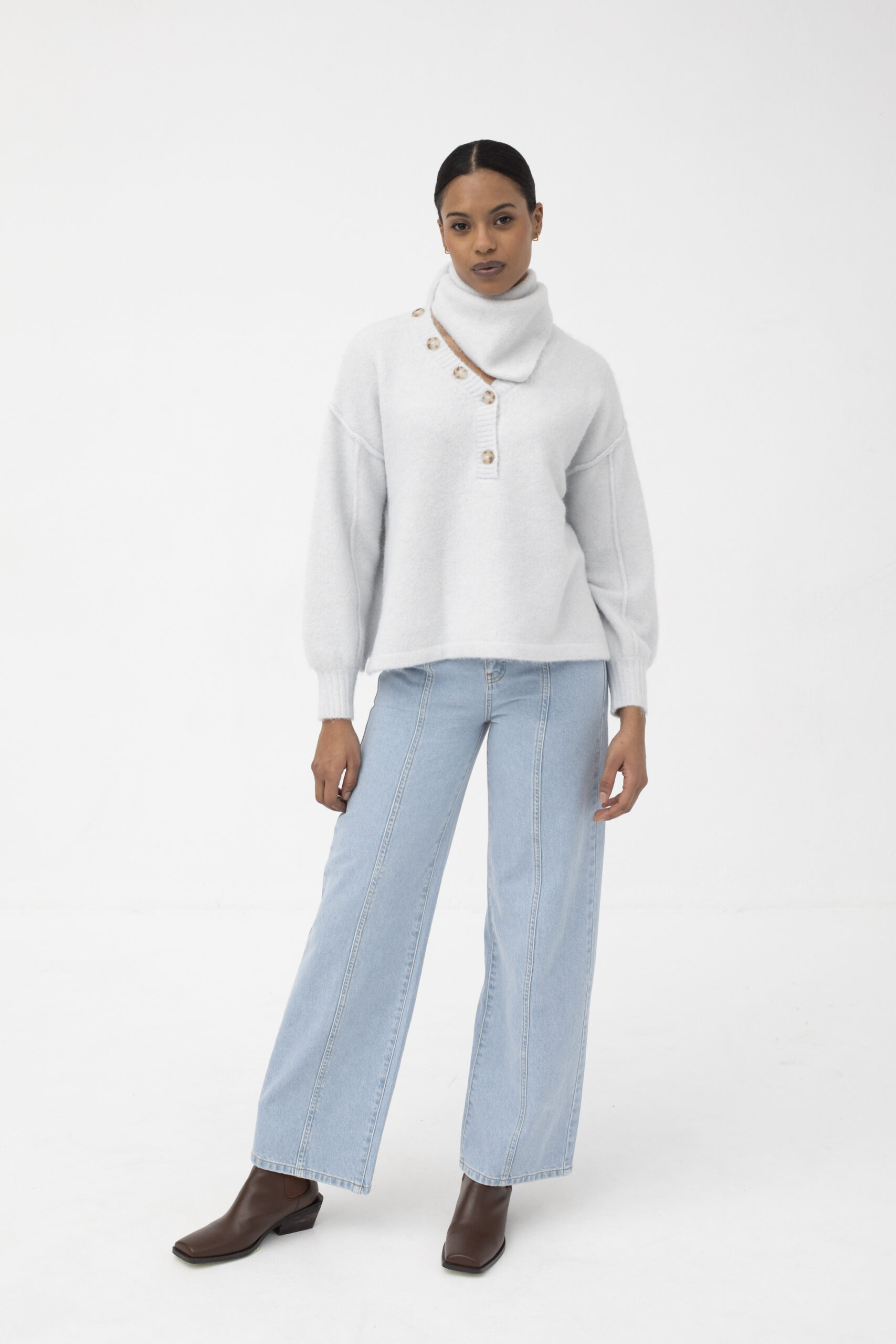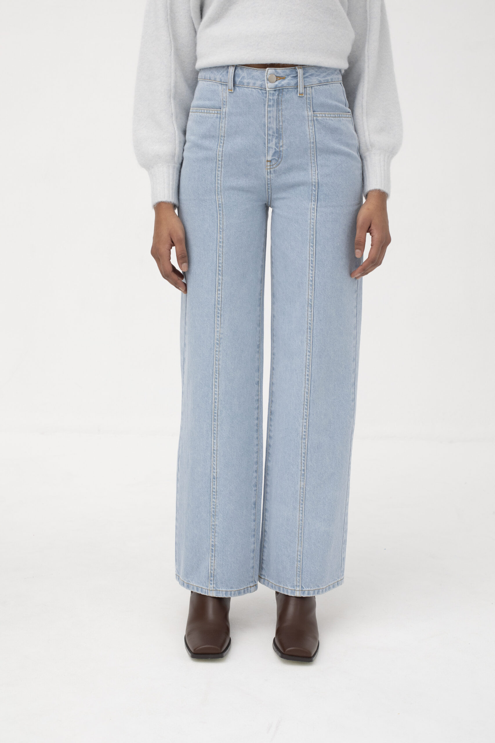& Free ShippingPantalón tejano de tiro alto y corte ligeramente ancho, con costuras centrales. Un fondo de armario que se ajusta perfectamente a cualquier necesidad.
