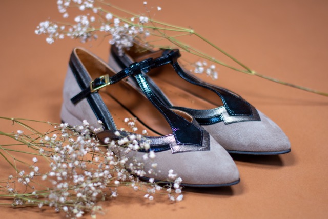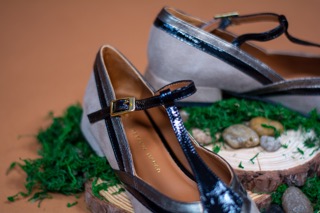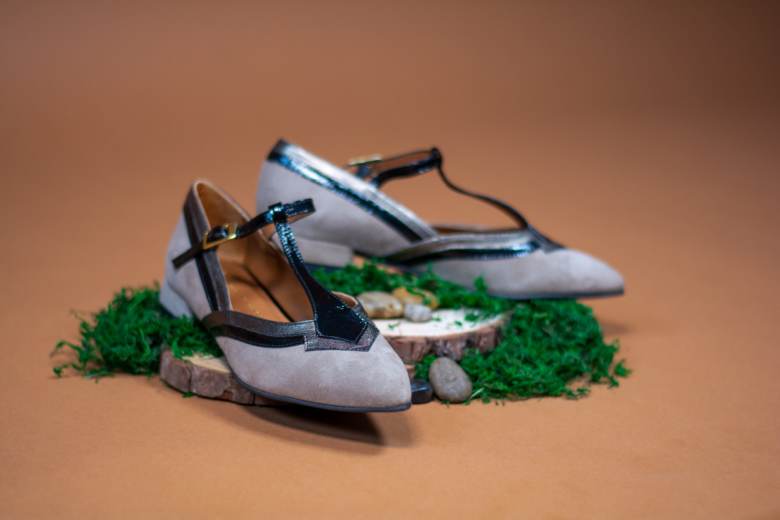 & Free ShippingZapato de ante beige amarronado con elegantes detalles en negro y charol brillante. Plantilla interior de piel acolchada y tacón de 2 cm. Su diseño en forma de “T” realza el pie y aporta un toque sofisticado y femenino. Fondo de armario cómodo, elegante y casual.